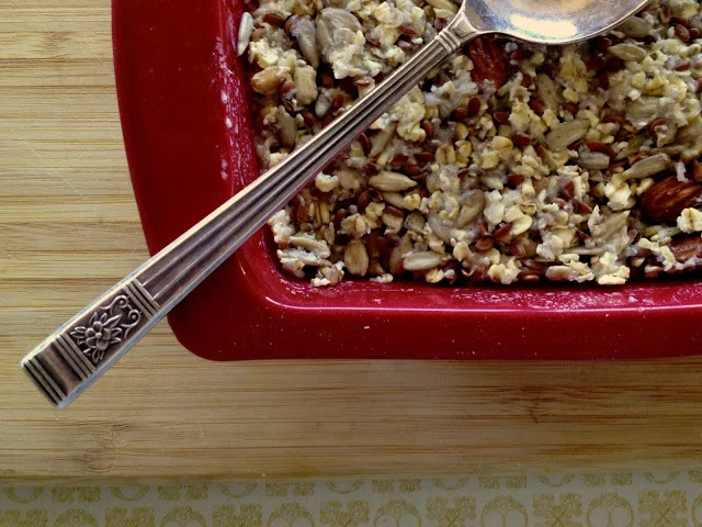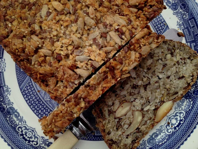 This recipe is ridiculously easy to make. A clever mixture of nuts, seeds and oats. Naturally gluten free and vegan. It's basically combine, soak and bake. Make sure you use a silicon loaf pan. It's essential that you're able to turn the loaf out halfway through cooking.