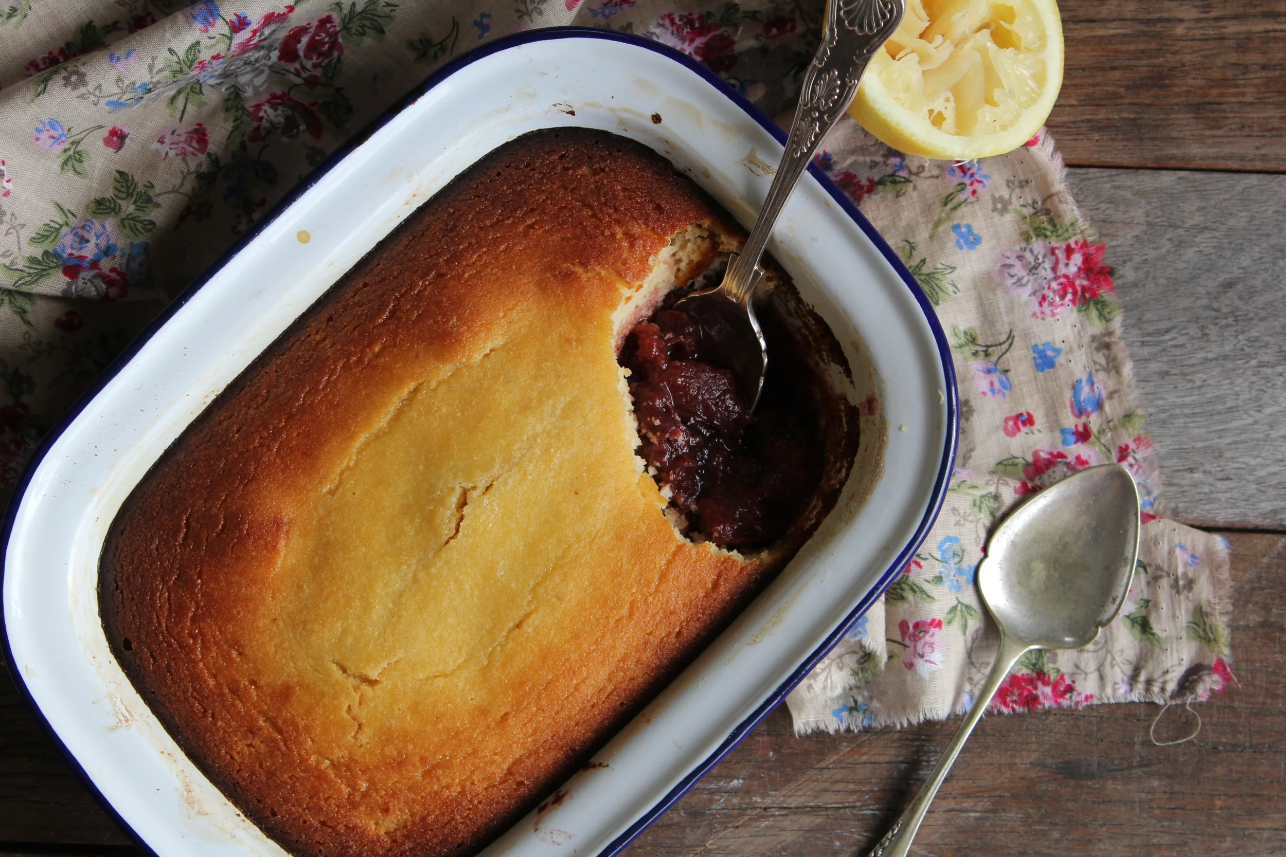 Flourless lemon & plum pudding